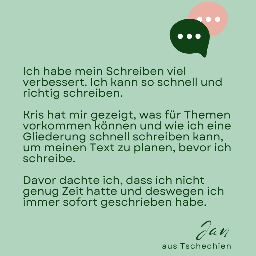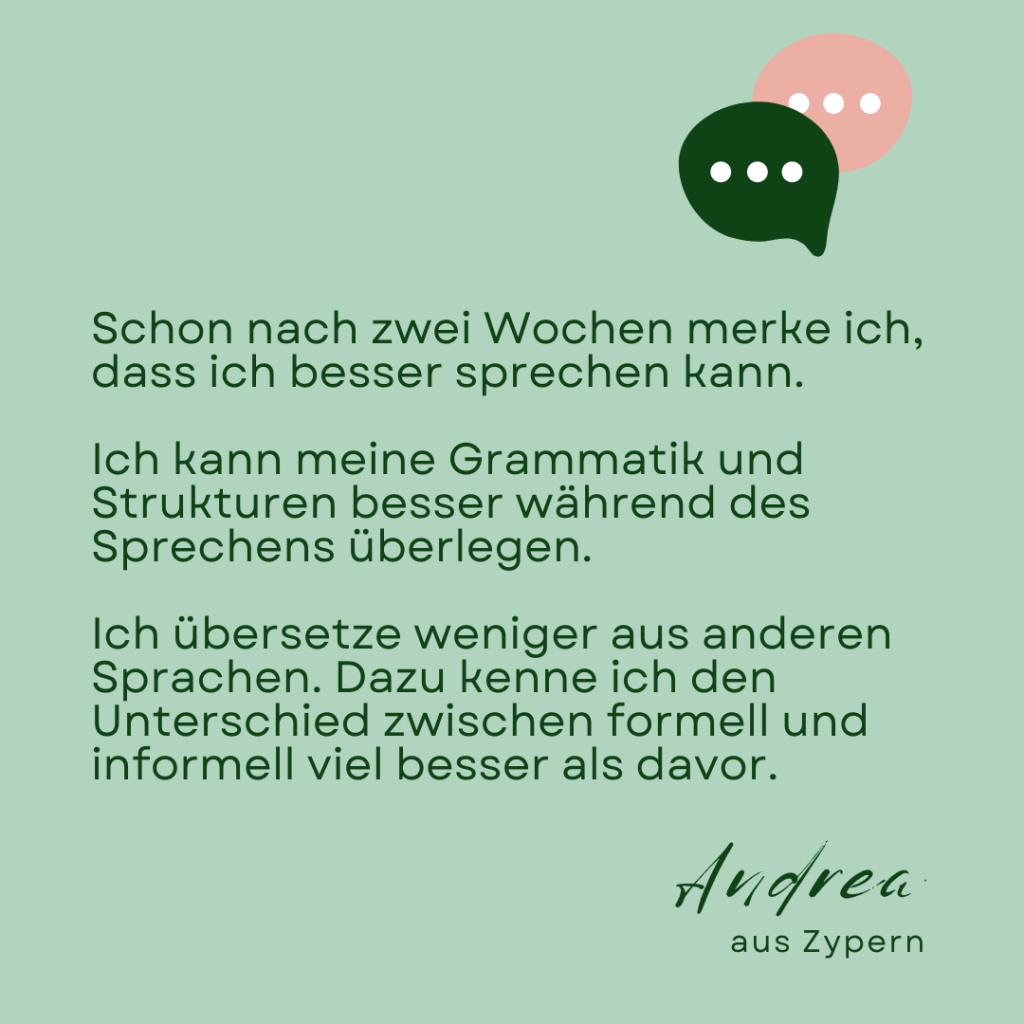 → Du glaubst an dich und fühlst dich beim Sprechen und Schreiben wohl!